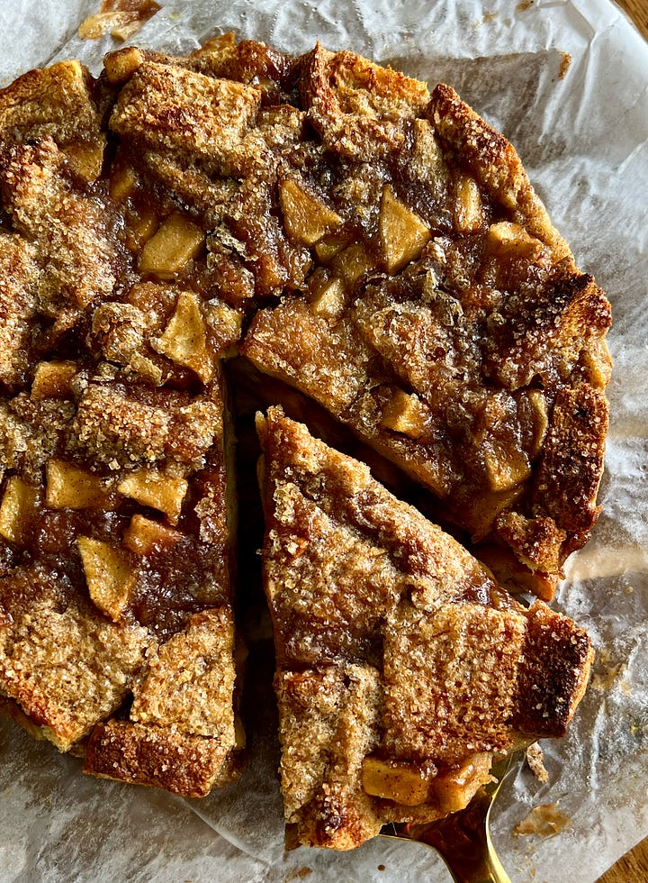 Fresh from the oven, it’s best served warm with a scoop of vanilla ice cream, a spoonful of extra gooey apples, and a sprinkle of flaky sea salt. The hot and cold, creamy and spiced, soft and gooey combo makes it the kind of dessert you’ll want to curl up with on a chilly evening.