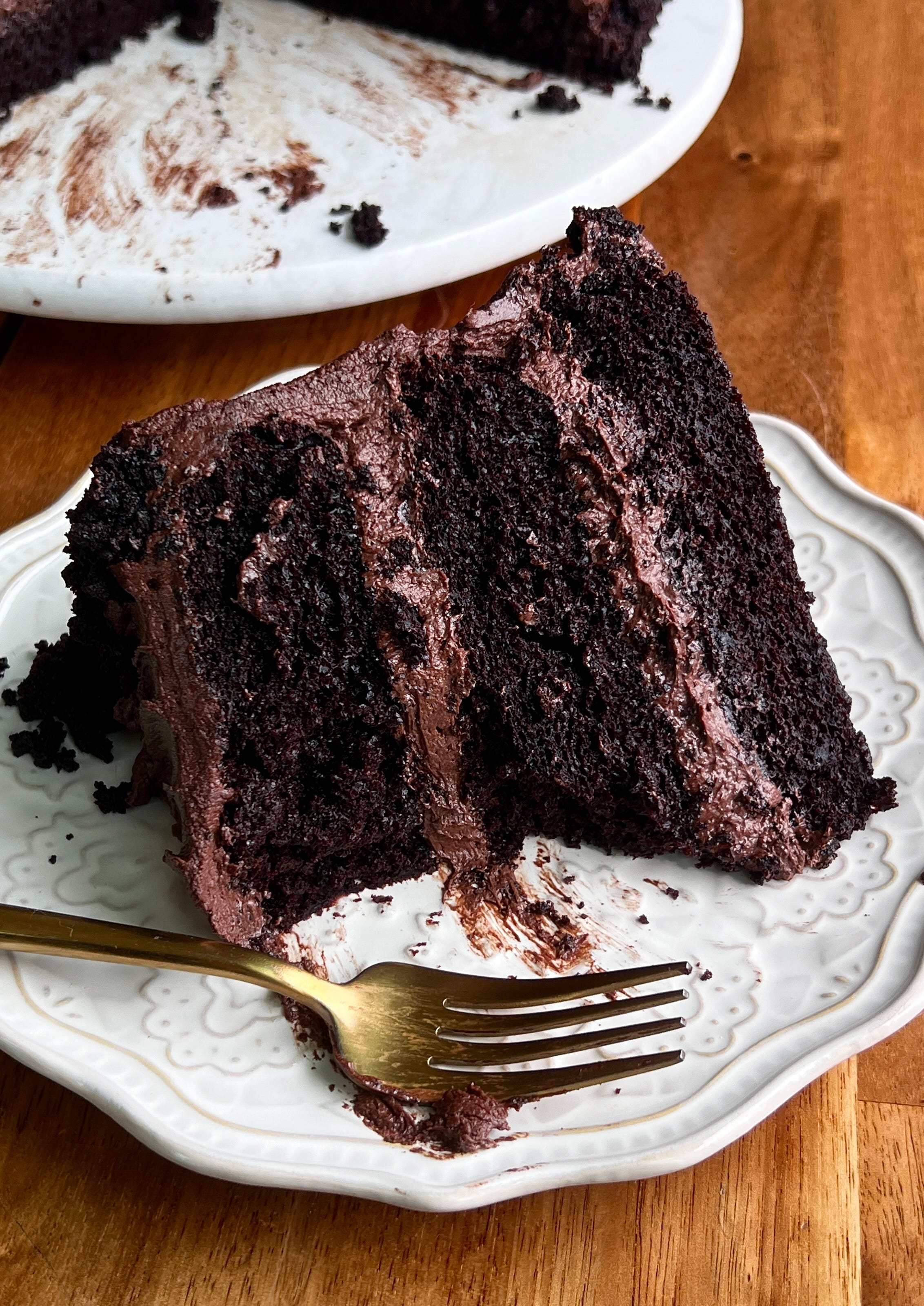 A soft, moist, perfectly sweet chocolate cake with a hint of espresso to deepen the chocolate flavor, layered with a silky, smooth chocolate frosting. It’s timeless, simple, and the kind of cake you’ll come back to for birthdays, celebrations, or just because.